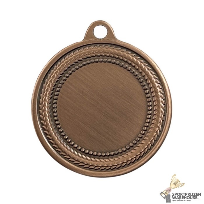 Deze medaille heeft een diameter van 4 cm, dikte van 2 mm en graveer ruimte aan de achterzijde van 32 mm.