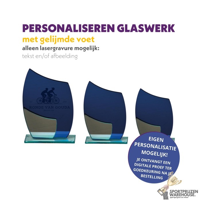 De glazen awards van Sportprijzenwarehouse kunnen voorzien worden van een Lasergravering of UV print. U kunt hiervoven de graveer optie(s) zien en kiezen van de Myriam award. Uw eigen ontwerp of tekst kunt u eenvoudig uploaden boven de bestel knop of de tekst invoeren in het tekstveld. Je ontvangt een digitale proefdruk ter goedkeuring na het afronden van jouw bestelling binnen 4 werkdagen. Afhankelijk van de drukte wordt jouw glazen trofee na jouw akkoord binnen 7 werkdagen geleverd. Je kijkt nu naar artikel: Myriam