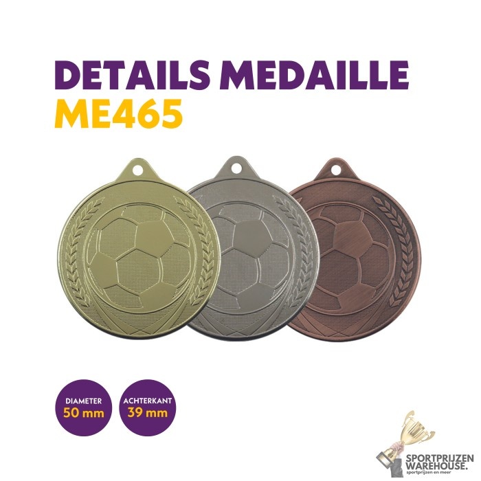 De Voetbal bal medaille is verkrijgbaar met diverse opties. De medailles kunnen, als het type medaille geschikt is, voorzien worden van een eigen tekst, afbeelding en halslint naar keuze. In het optieveld hierboven kan jij gemakkelijk je eigen medaille samenstellen. Wens je een eigen afbeelding op de voorzijde van de medaille? Die kan je hierboven bij het bestel proces uploaden (Bij voorkeur een .PNG bestand). Vergeet in dat geval niet de 'eigen afbeelding' als optie te kiezen onder het kopje 'gewenste afbeelding'. Een medaille sticker is een doorzichtige sticker die op de achterzijde van de medaille geplakt kan worden. Als je kiest voor gravering betekent het dat de tekst aan de achterzijde in de medaille gekrast wordt.. Sportprijzenwinkel Naaldwijk: scherpe prijzen en snelle levering op sportprijzen. Liever een offerte op maat? Neem dan contact met ons op via de klantenservice button rechts onderin.