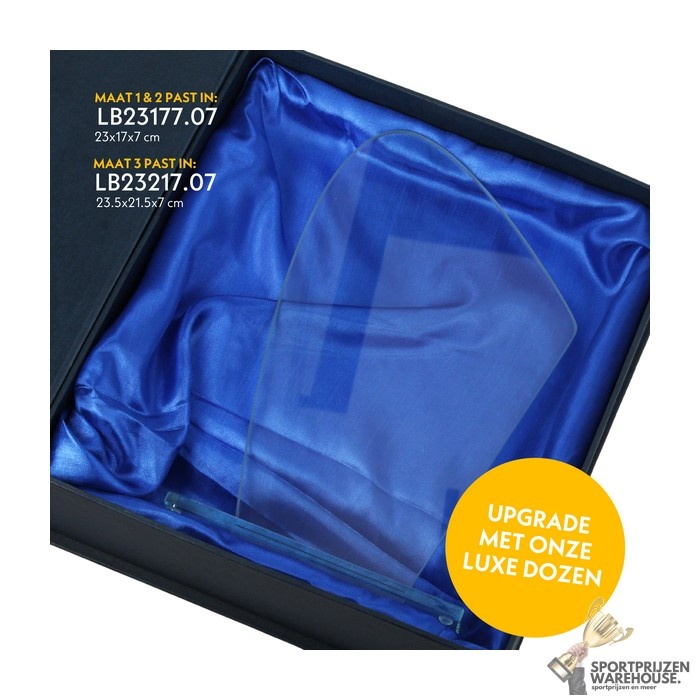 De glazen awards van Sportprijzenwarehouse kunnen voorzien worden van een Lasergravering of UV print. U kunt hiervoven de graveer optie(s) zien en kiezen van de Monique award. Uw eigen ontwerp of tekst kunt u eenvoudig uploaden boven de bestel knop of de tekst invoeren in het tekstveld. Je ontvangt een digitale proefdruk ter goedkeuring na het afronden van jouw bestelling binnen 4 werkdagen. Afhankelijk van de drukte wordt jouw glazen trofee na jouw akkoord binnen 7 werkdagen geleverd. Je kijkt nu naar artikel: Monique
