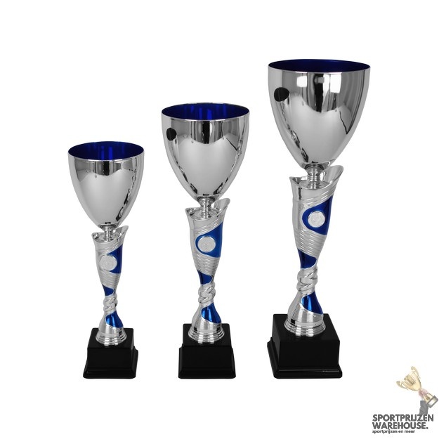 De AK5081 sporttrofee heeft een strak en modern ontwerp met een zilverkleurige metalen cup en een opvallend blauw accent in het middendeel. De verzwaarde kunststof voet zorgt voor een solide en stabiele basis, wat deze trofee zeer geschikt maakt voor moderne sportwedstrijden en competities. Dankzij de verschillende hoogtes binnen de serie is de AK5081 ideaal voor meerdere klasseringen binnen één evenement. Een eigentijdse sportprijs met een frisse uitstraling. Beschikbare varianten: 39 cm, 46 cm, 53 cm. Alle sportprtijzen kunnen gegraveerd worden met een tekst of, indien de ruimte op een bokaal het toe laat, een eigen logo of afbeelding. Liever een offerte op maat? Twijfel dan niet je wensen te mailen naar [email protected] en je krijgt binnen 48 uur een scherpe offerte van ons per mail.