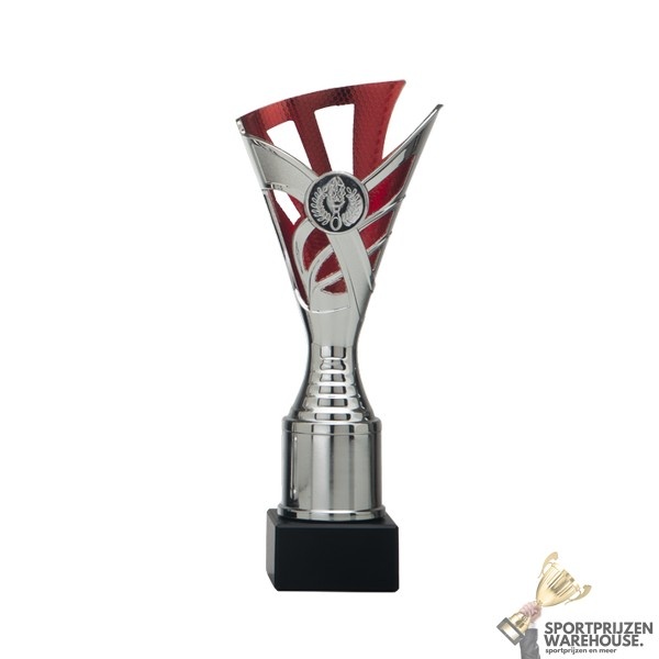 Deze Sportprijs met rood accent kan voorzien worden van een gravering naar keuze
