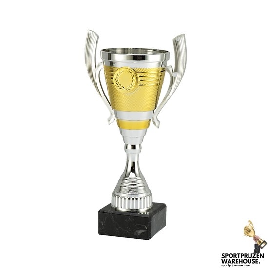 De beker heeft een hoogte van 21 cm en staat op een stevig marmeren voetje, wat zorgt voor een klassieke en sportieve uitstraling. Dankzij het tijdloze ontwerp is deze bokaal geschikt voor vrijwel iedere sport of gelegenheid. Op de voet kan eenvoudig een plaatje met tekst worden bevestigd, zodat de prijs persoonlijk gemaakt kan worden voor de winnaar.