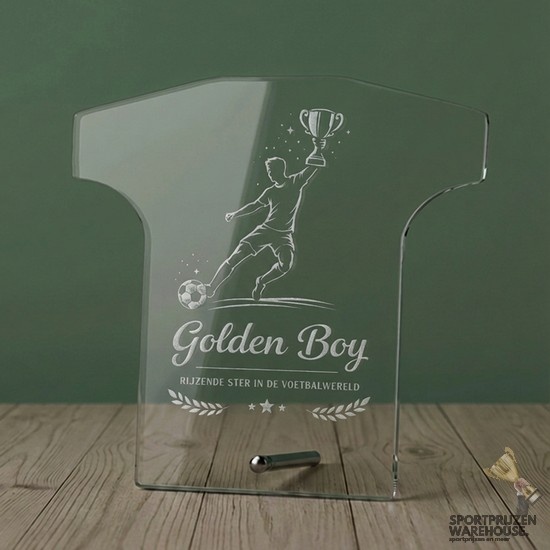 Deze glazen trofee in verschillende maten kan voorzien worden van een Laser gravering naar keuze. Upload eenvoudig boven de bestelknop jouw afbeelding. Na ontvangst van jouw bestelling gaan wij aan de slag en ontvang jij een digitale druk proef ter goedkeuring. Na goedkeuring is de levertijd ca 3-5 werkdagen.Maak sportprijzen uniek bij de sportprijzen winkel van Den Haag en omstreken. Laat medailles graveren en kies een kleurrijk halslint. Glazen awards en bekers worden gegraveerd met teksten of logo’s naar keuze. Voor elke sportieve prestatie!Dit is de Voetbal tenue award - met full colour print - W211.